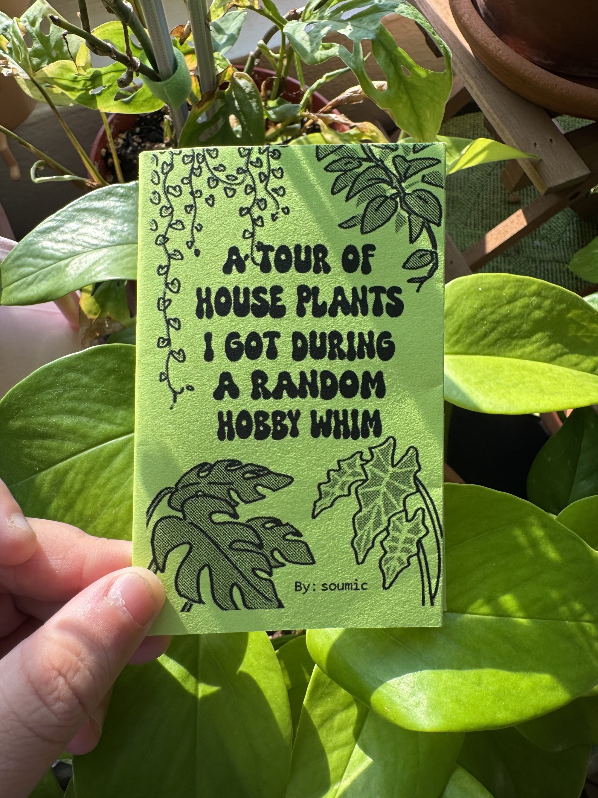 8-fold zine about my growing house plant collection printed on lime paper.
