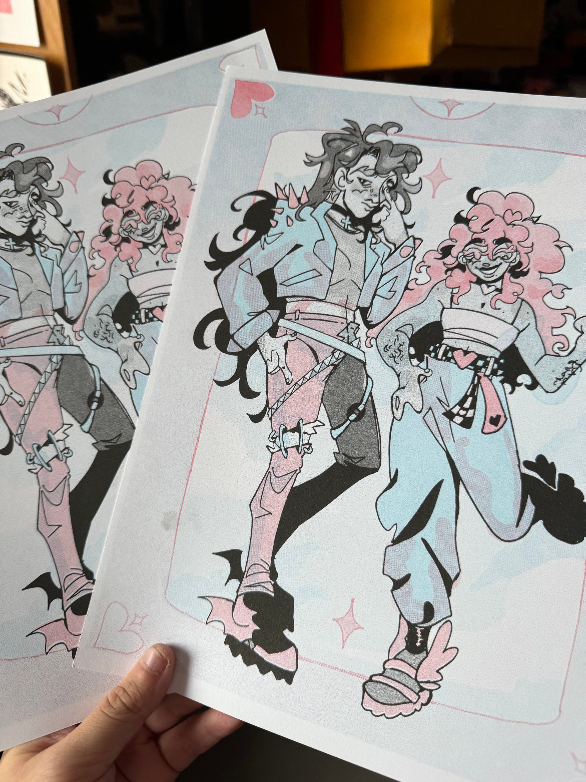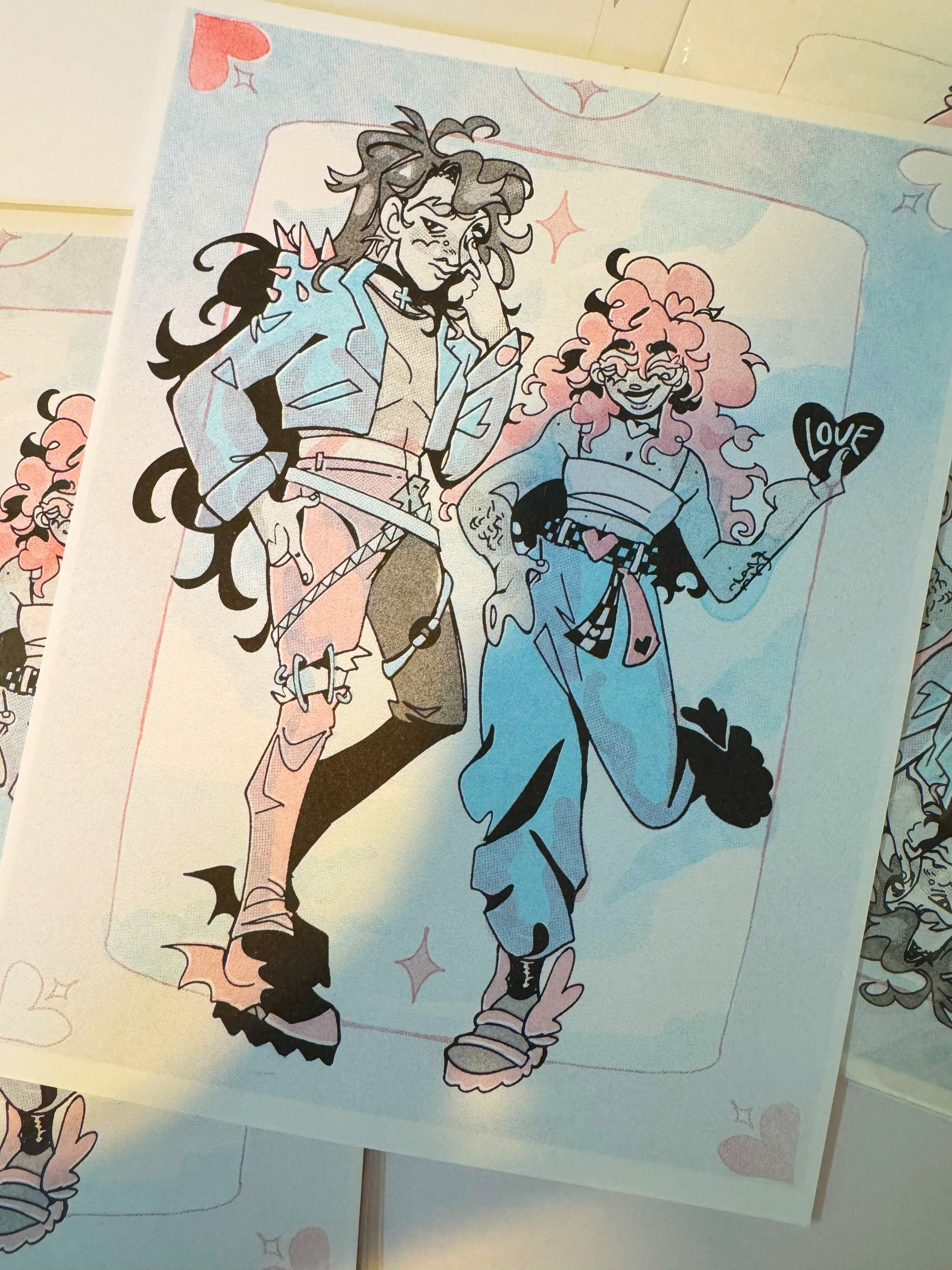 Summer love, summer fun — this risograph features scarlet, aqua, and black!