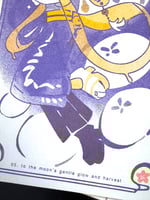 5 x 7 on white paper, size may fluctuate due to hand-cutting