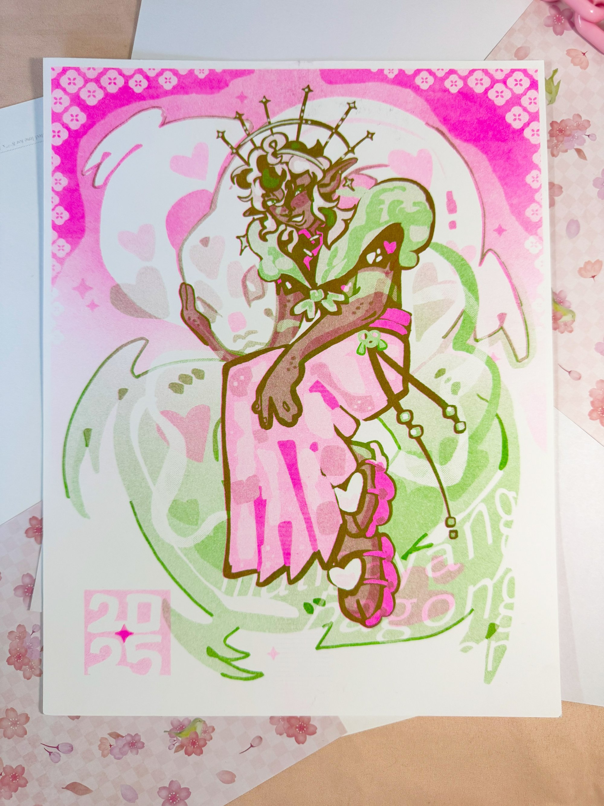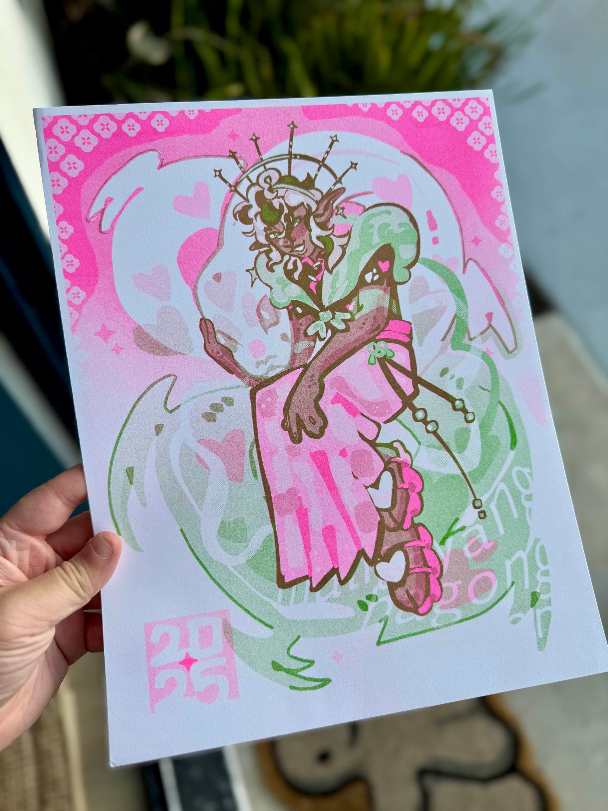 The year of the snake grants you good fortune, this risograph features fluorescent pink and kelly green inks!