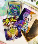 Card-shaped sticker of Yugi Muto and the millennium puzzle.
